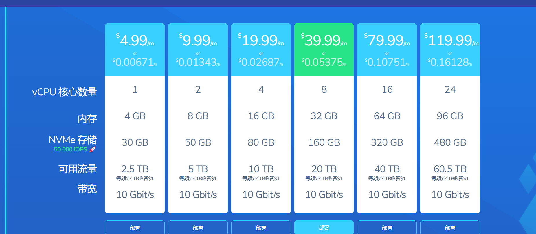 - 10 Gb/s 带宽,不限流量/月