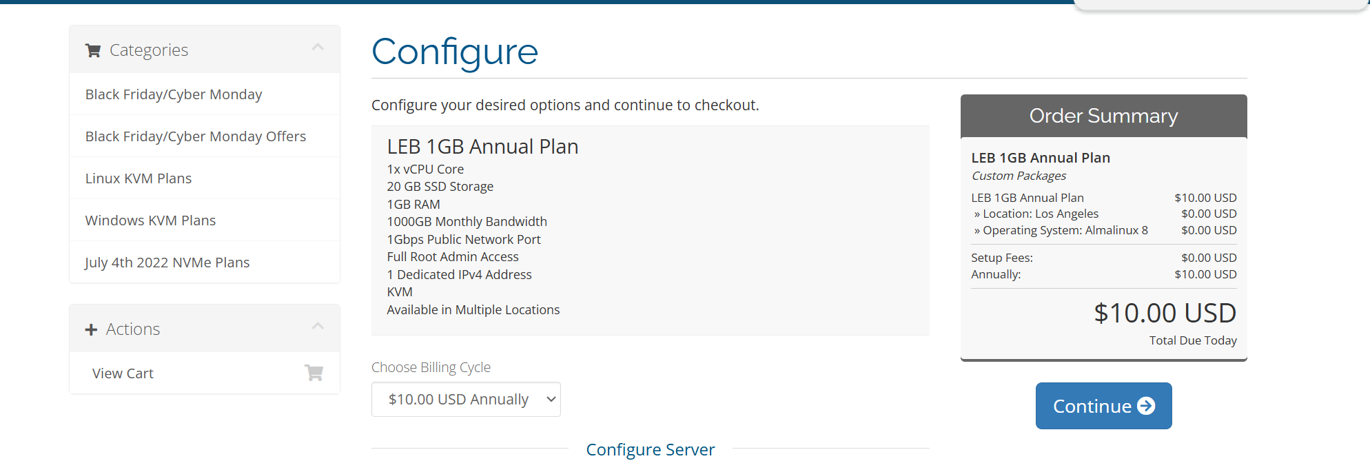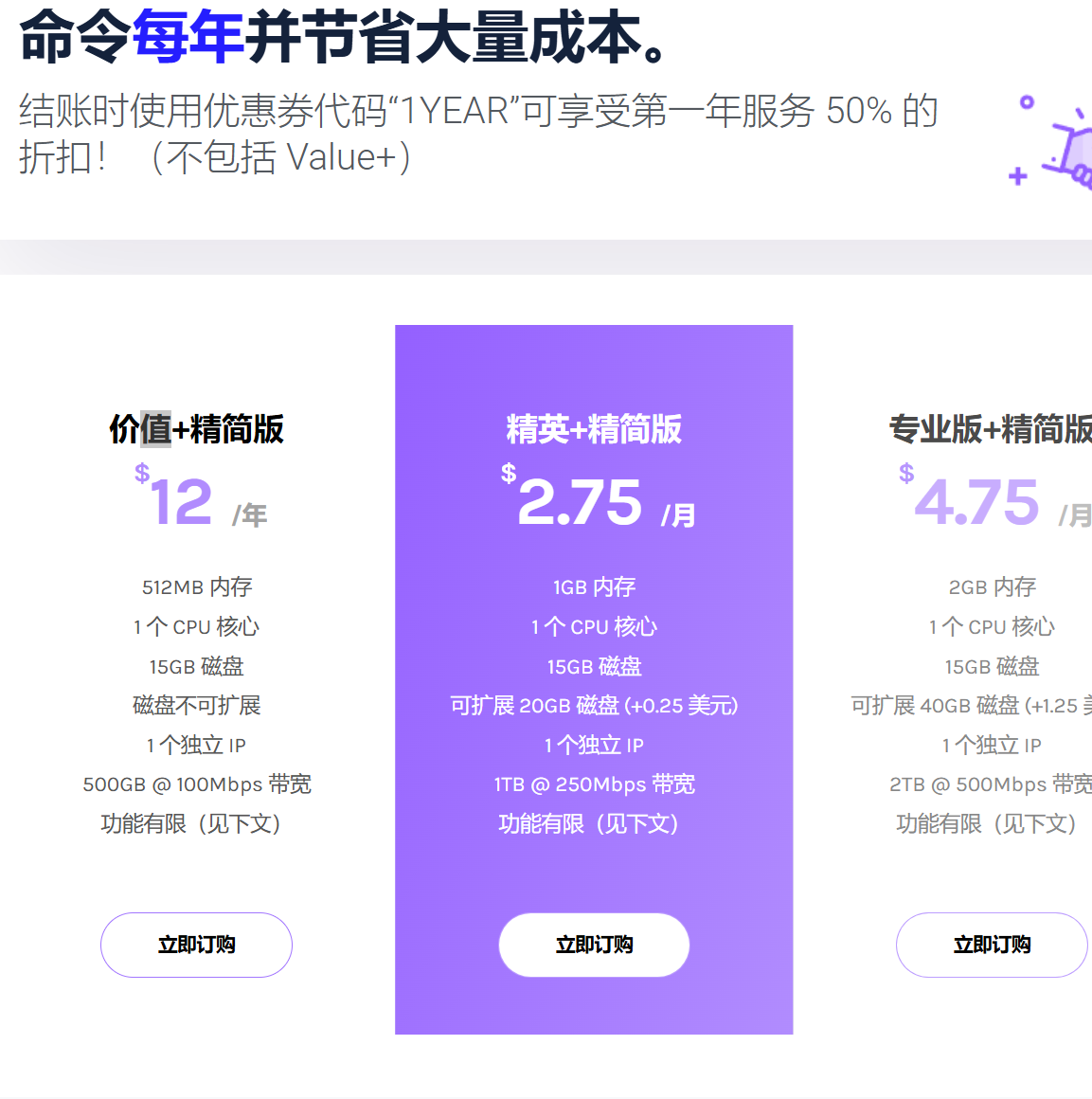 CloudCone,一个2016年左右成立的美国主机商,有提供洛杉矶MC机房的VPS、云服务器。弹性计费制度,我们可以中途不要删除重新开通。也是不定期的有年付10美元左右的套餐计划可选的,目前不一定有库存,但是几乎每个月都要更新优惠,所以也收藏至1美金月付的推荐中!