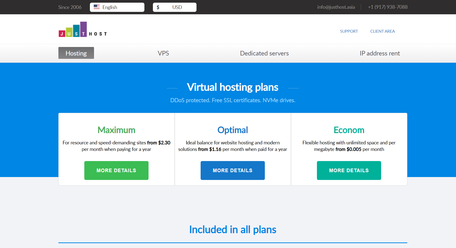 justhost 是2006年就成立的俄罗斯老牌vps商家,信用非常不错!