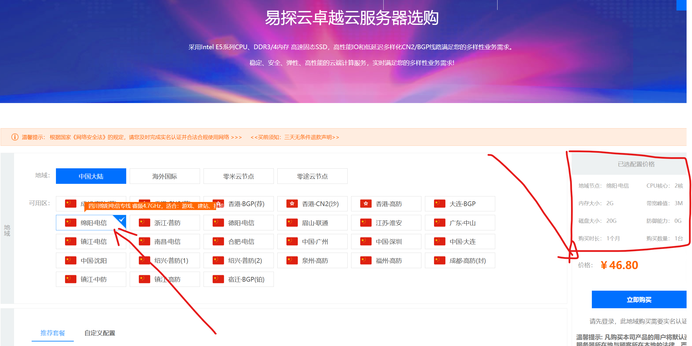 | 易探云 | 服务器租用,vps云服务器 | 绵阳IDC机房vps最低套餐【2H2G3M/46.8元每月】 | https://www.yvy.cn/server/purchase |